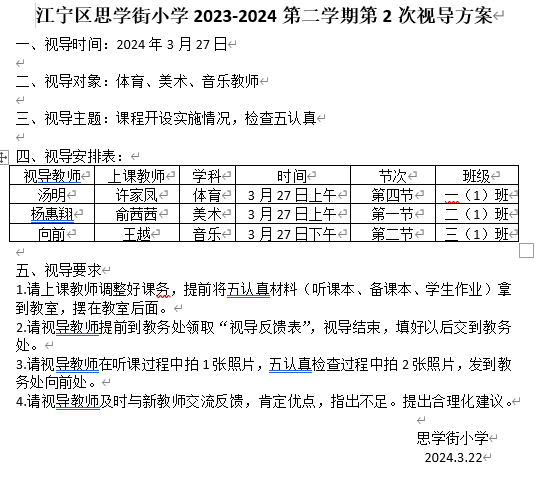 思学街小学2023-2024第二学期第2次视导反馈报告
